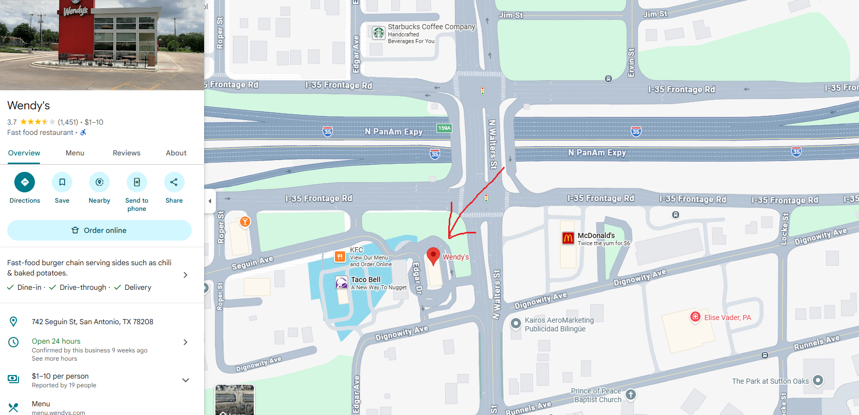 See Map below for location of the Wendy’s.