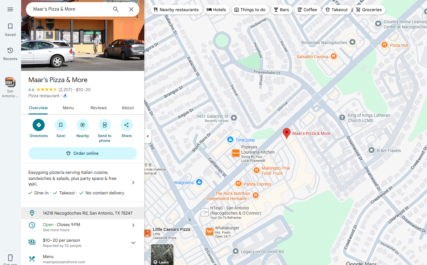 location will be Maars Pizza (14218 Nacogdoches Rd, San Antonio, TX 78247).